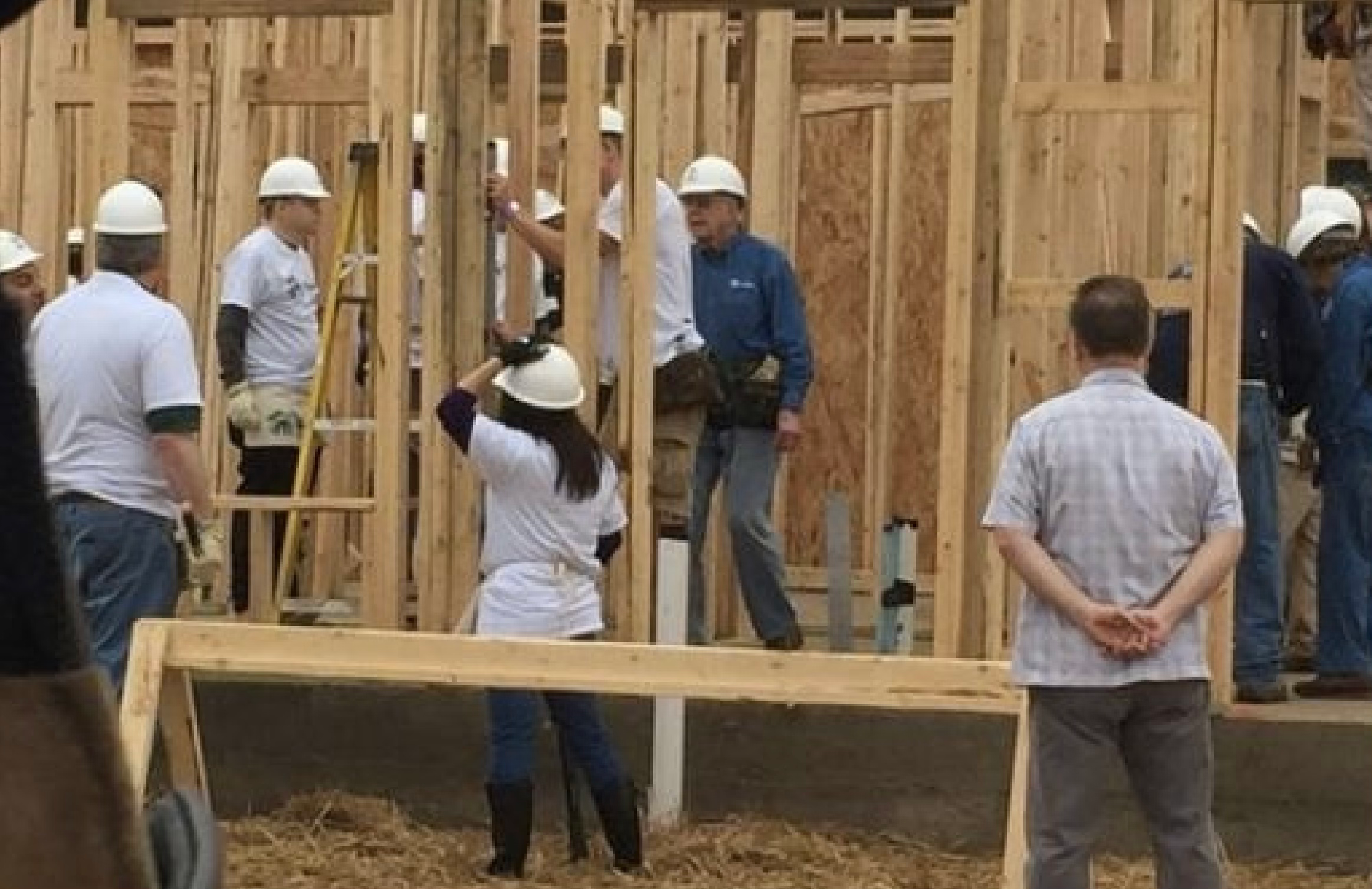 The following year, I saw his carpentry skills firsthand when I spent a day with the Carters building a Habitat for Humanity house in Memphis. I had hoped to build houses with them in Nepal, but the trip was canceled because of unrest there. This was probably just as well because Emily had ratted me out to the former president and first lady, telling them I would be hopeless with the bamboo building materials.