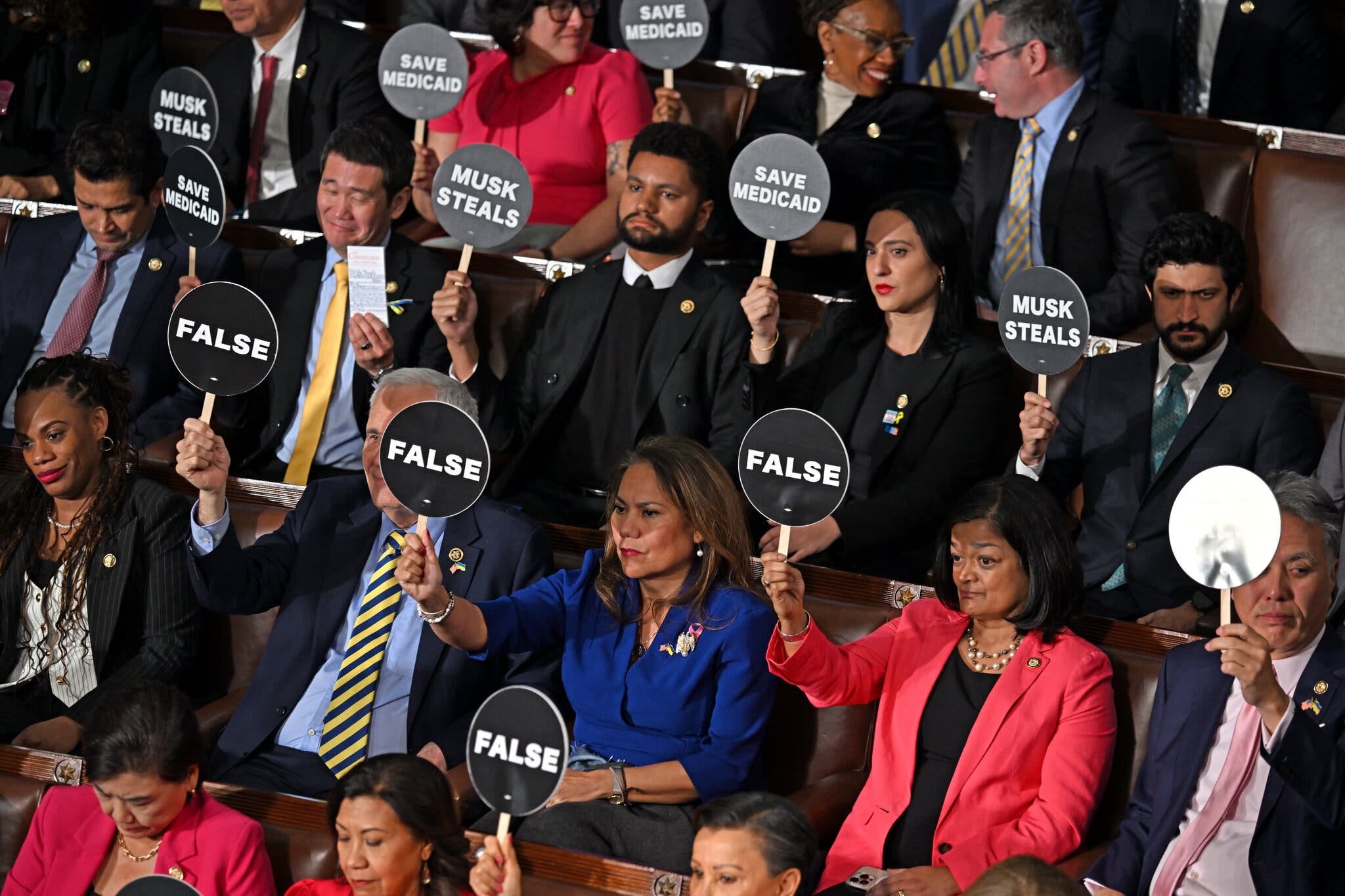 Stephen Colbert mocked the props Democrats brought to President Trump’s big boring speech. He joked that the paddles they raised — “Save Medicaid,” “Musk Steals” and “False”— made it seem as if they were bidding on an antique tea set. Whichever genius came up with that idea forgot to check whether the pool cameras in the chamber could pick up the words on the paddles. Most of the time they couldn’t. The pink outfits didn’t do much and even Rep. Al Green’s disruption (shouting “No Mandate on Medicaid” before being ejected) — while energizing — cannot serve as a model of resistance because it puts off the independents needed for our side.
